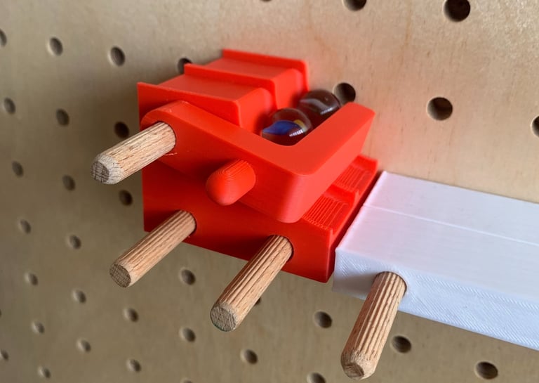 To support this idea, I designed a starting block that fairly lines up and releases marbles simultaneously. While the board’s slope may still give one marble an advantage, this challenge adds to the problem-solving experience for children. I also ensured the ramp’s design matched Chugelibahn’s existing aesthetic, while keeping the door open for a future visual redesign.